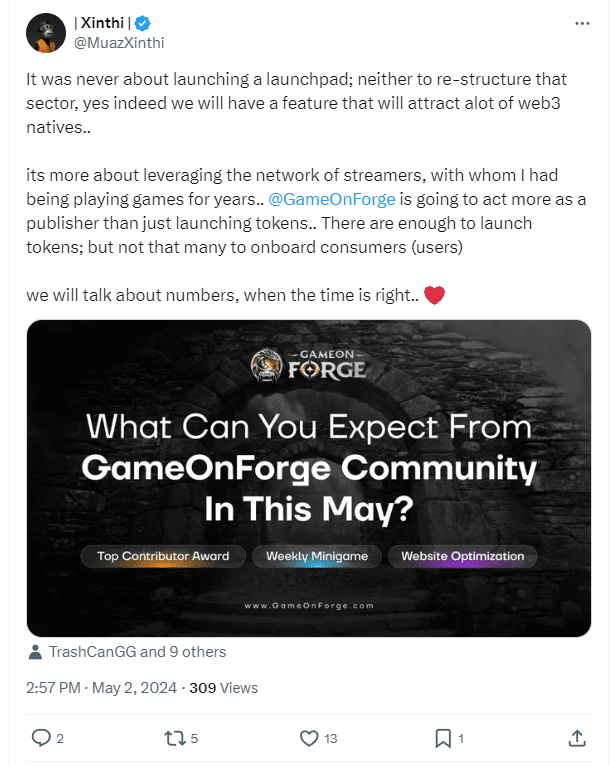 Co-founder MuazXinthi articulates GameOn Forge’s distinctive vision, elucidating that while token launches will play a role, the primary focus lies in game publishing and user acquisition. By prioritizing the onboarding of genuine gamers, GameOn Forge seeks to cultivate an environment conducive to sustained growth and innovation. Their strategy aims to attract high-value IPs and brands to the gaming landscape, thereby enhancing the ecosystem’s vibrancy and appeal.